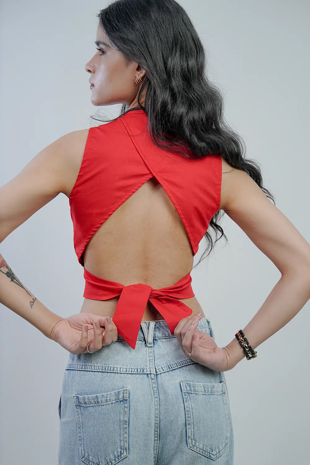 A statement backless wrap tank crafted in Lycra. Featuring a padded design and tie belt closure, it combines comfort with a sleek, modern edge