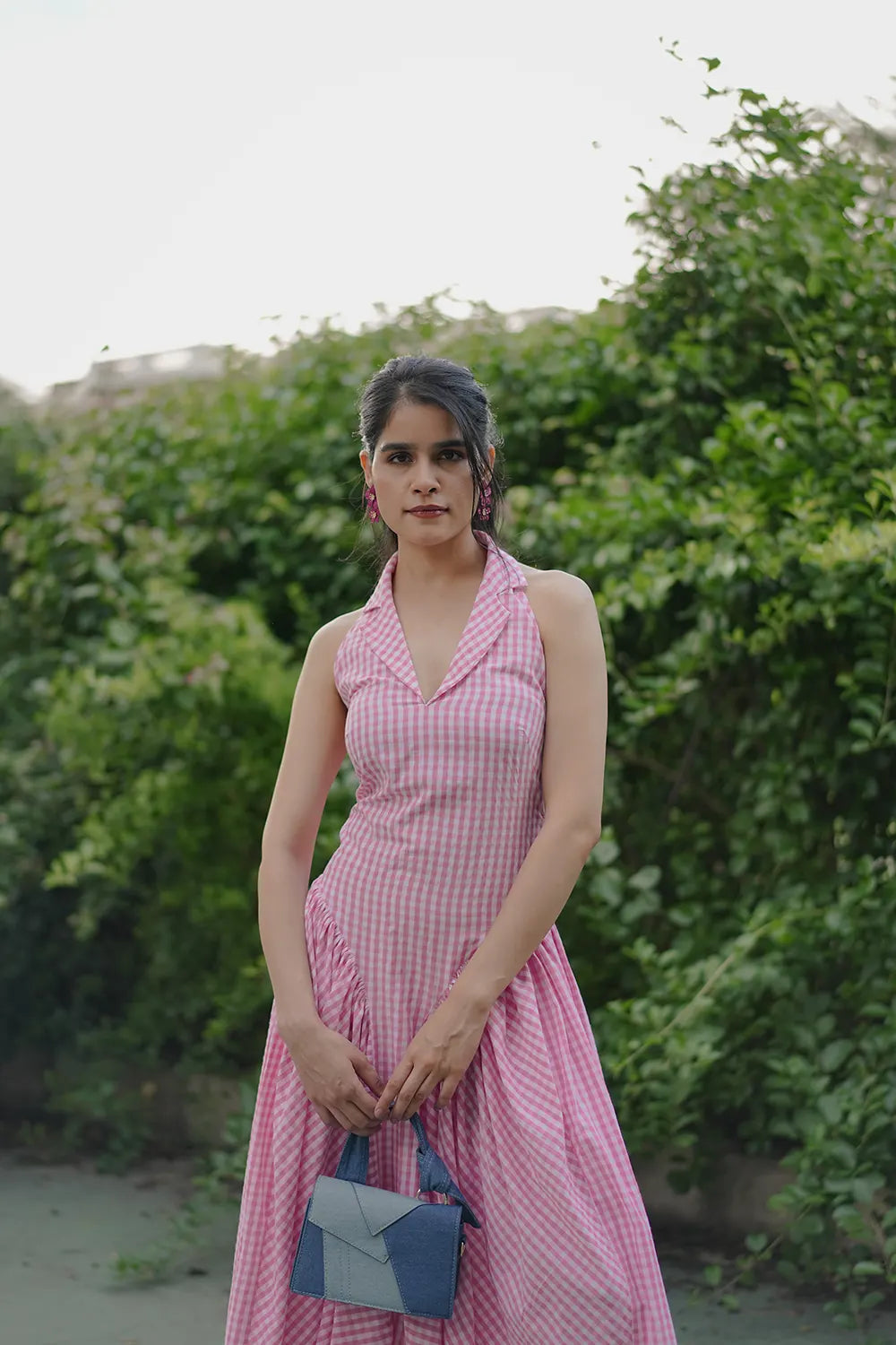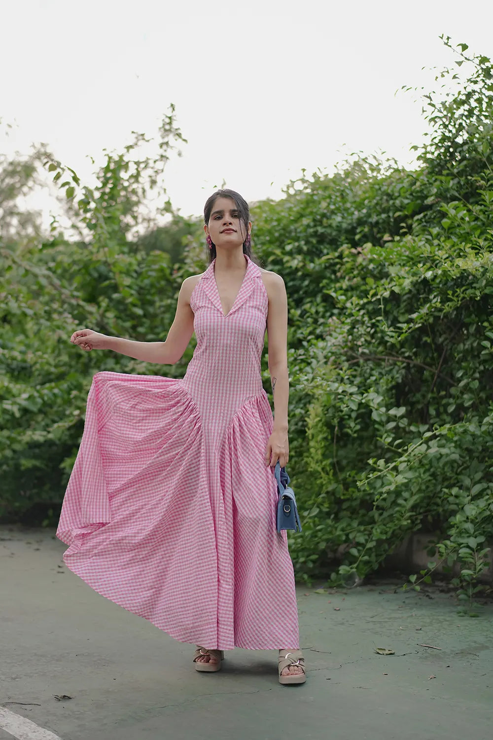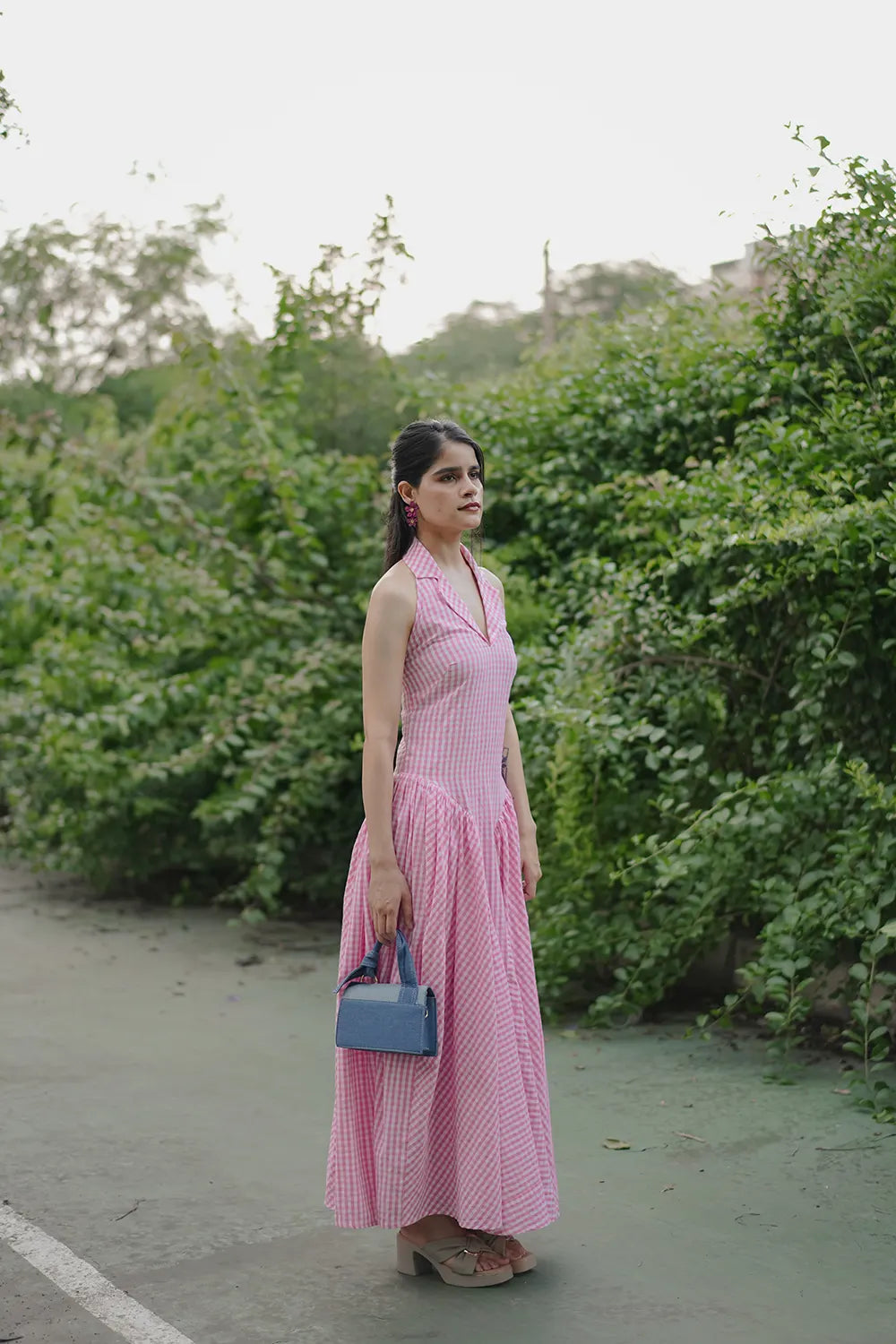 A charming pink gingham maxi dress designed for effortless summer days. Featuring a sleeveless cut, a flattering flared hem, and a timeless checked pattern, this piece blends cottagecore charm with modern ease.