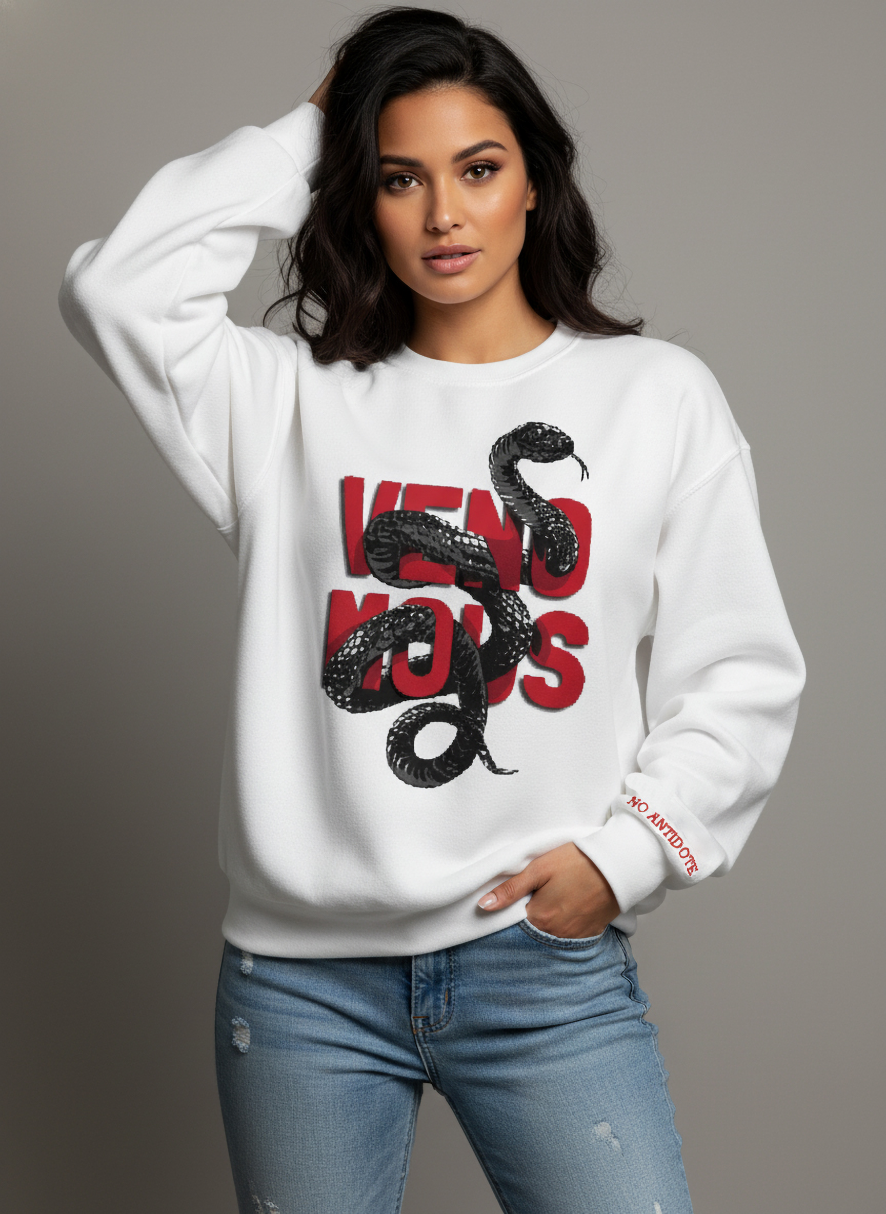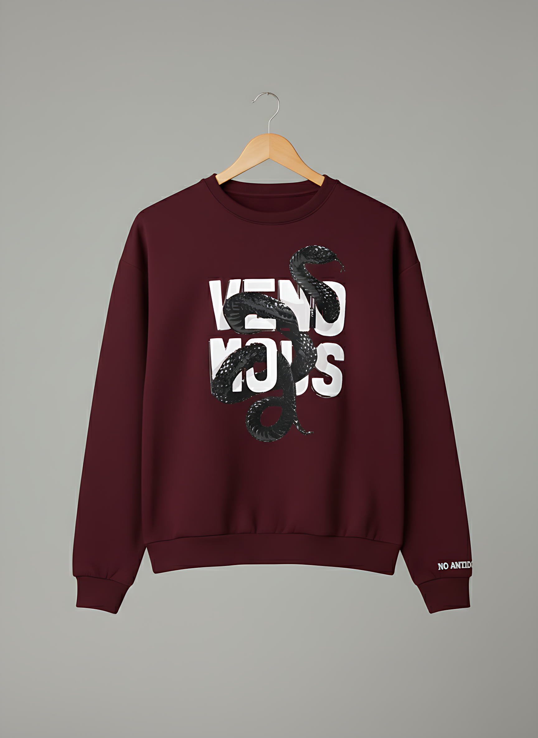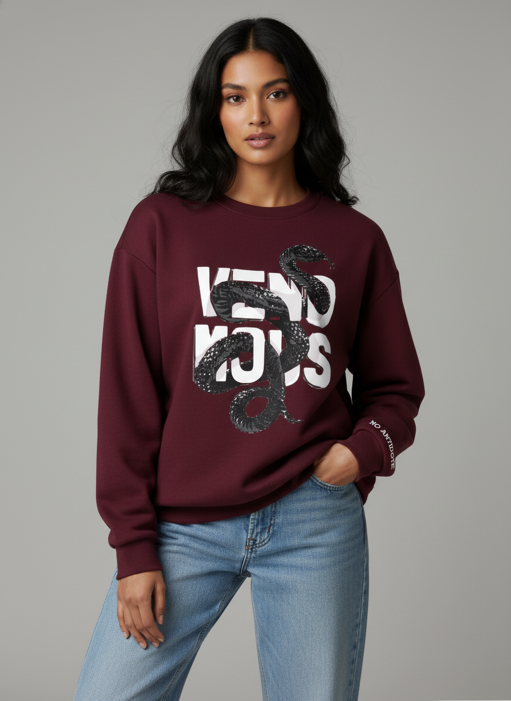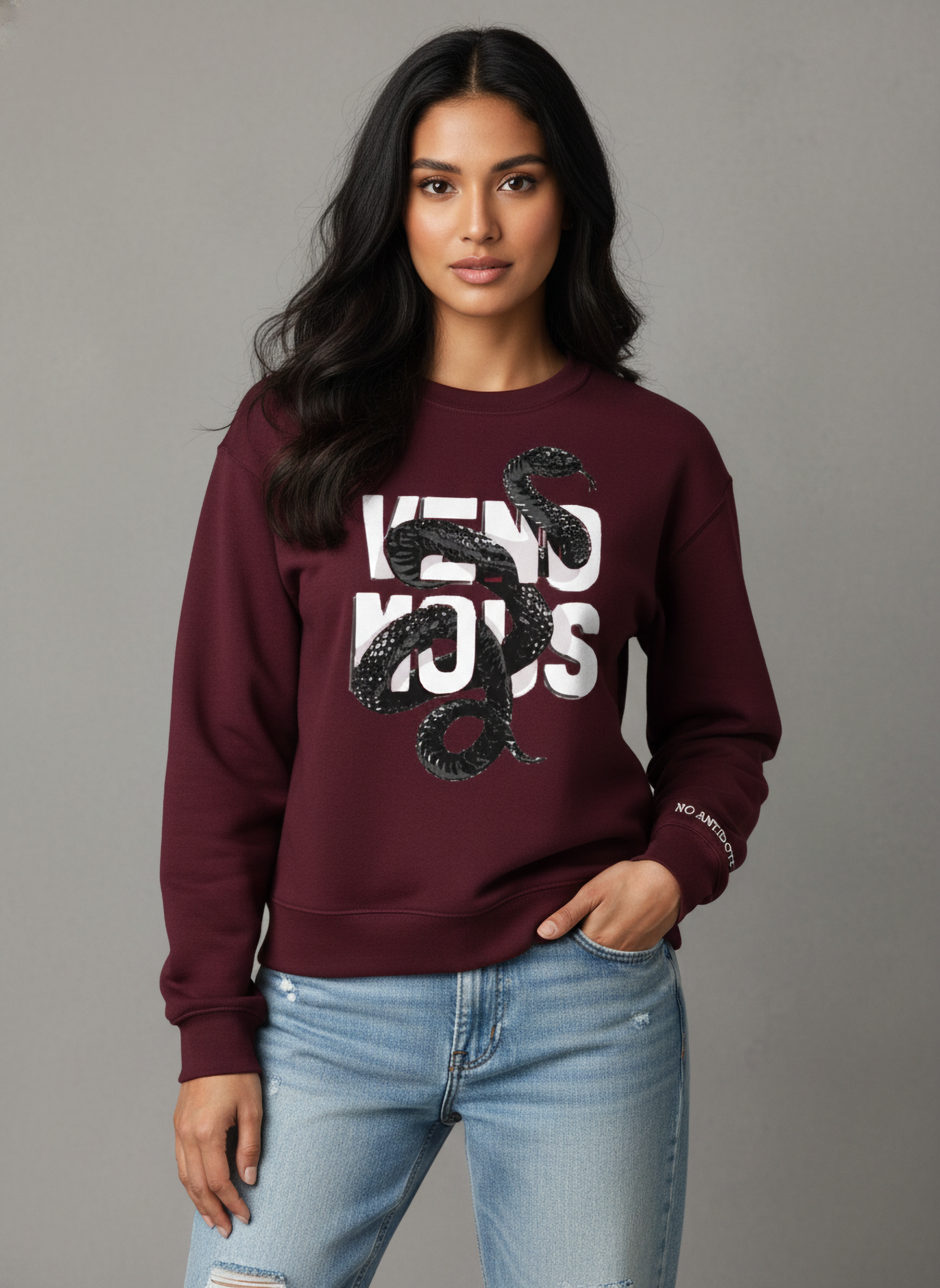 Bring out your dark‑feminine era with the Venomous Snake Oversized Sweatshirt, made for girls who like their street style a little dangerous. The bold “VENOMOUS” typography wrapped in a glossy black serpent gives instant rock‑chic attitude, while the deep maroon and crisp white colour options keep it looking premium and Insta‑ready.